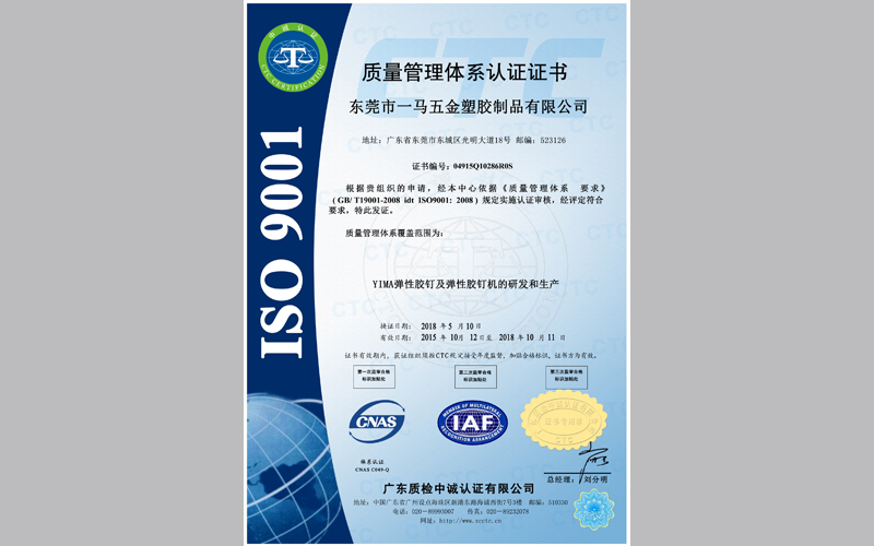 ISO質(zhì)量體系認(rèn)證-一馬膠針及膠釘機(jī)生產(chǎn)過(guò)程
